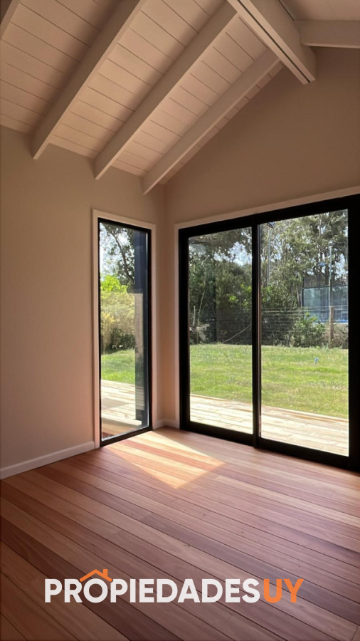 INTERIORES: CIELORASOS EN LAMBRIZ DE MADERA NATURAL. PISOS DE MADERA NATURAL DE EUCALIPTUS GRANDIS PLASTIFICADOS. PISOS DE BAÑOS EN MICROCEMENTO. PINTURA INTERIOR CON 3 MANOS DE INCALEX O SIMILAR INSTALACIÓN ELÉCTRICA CON MATERIALES DE PRIMERA CALIDAD. TABLERO ELÉCTRICO COMPLETO. PREVISIÓN PARA ENTRADAS DE CABLETV. TOMAS ELÉCTRICAS Y SPOTS LEDS EN EL CIELORRASO DE YESO. LUCES EXTERIORES Y PREVISIÓN PARA LUCES INTERIORES DECORATIVAS. CANALIZACIÓN PARA CAMARAS DE SEGURIDAD.