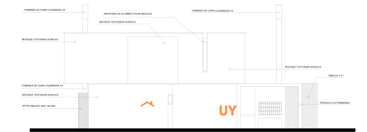 TERMINACIONES EXTERIORES: MUROS EXTERIORES TERMINADOS CON COMBINACIÓN DE REVESTIMIENTOS, EN WPC, REVOQUES Y